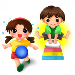 - (マット、とび箱、鉄棒、縄跳び、平均台、ボール等)